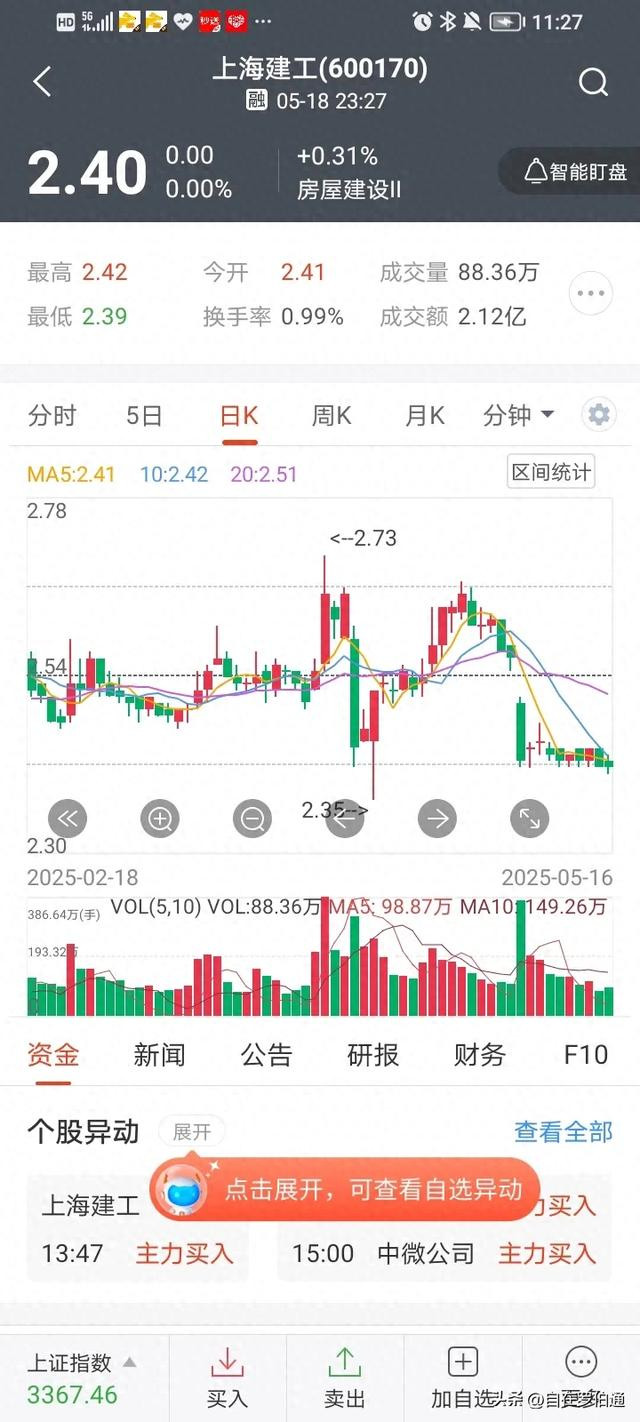 目前,上海建工股价只有2.40元,仍然处于下降通道。